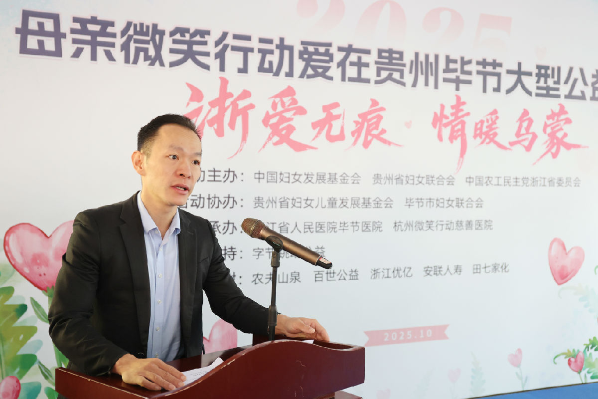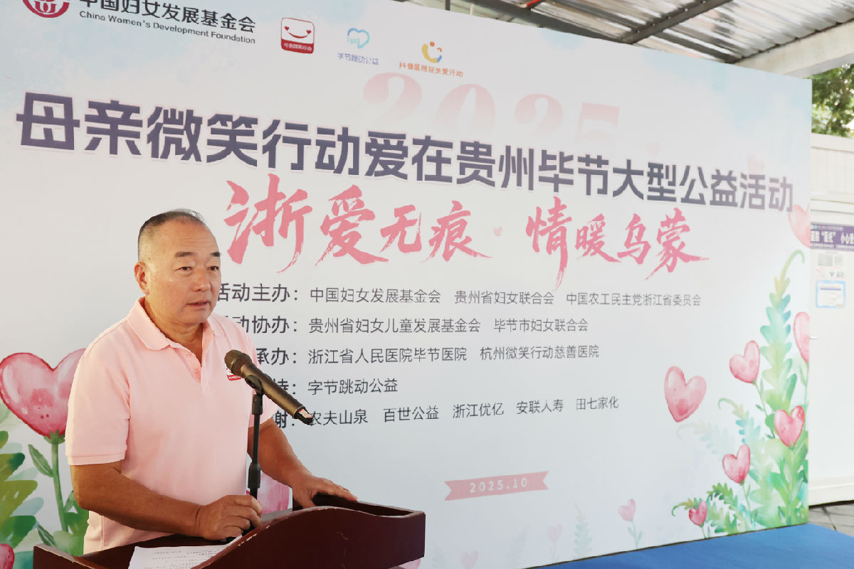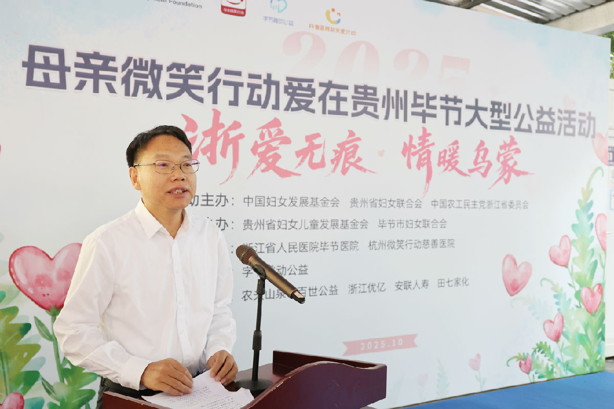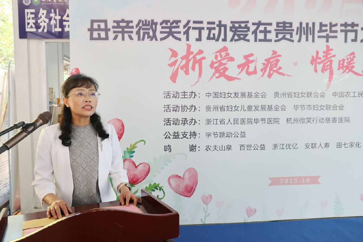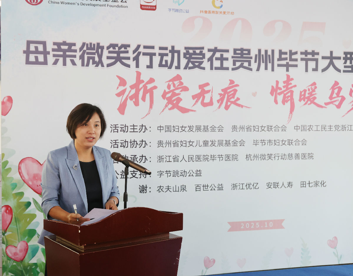10月10日,由中国妇女发展基金会、贵州省妇女联合会、中国农工民主党浙江省委员会主办,贵州省妇女儿童发展基金会、毕节市妇女联合会协办,浙江省人民医院毕节医院(以下简称“浙毕医院”)、杭州微笑行动慈善医院承办的以“浙爱无痕·情暖乌蒙”为主题的母亲微笑行动爱在贵州毕节大型公益活动启动仪式在浙毕医院广惠院区花园内举行。