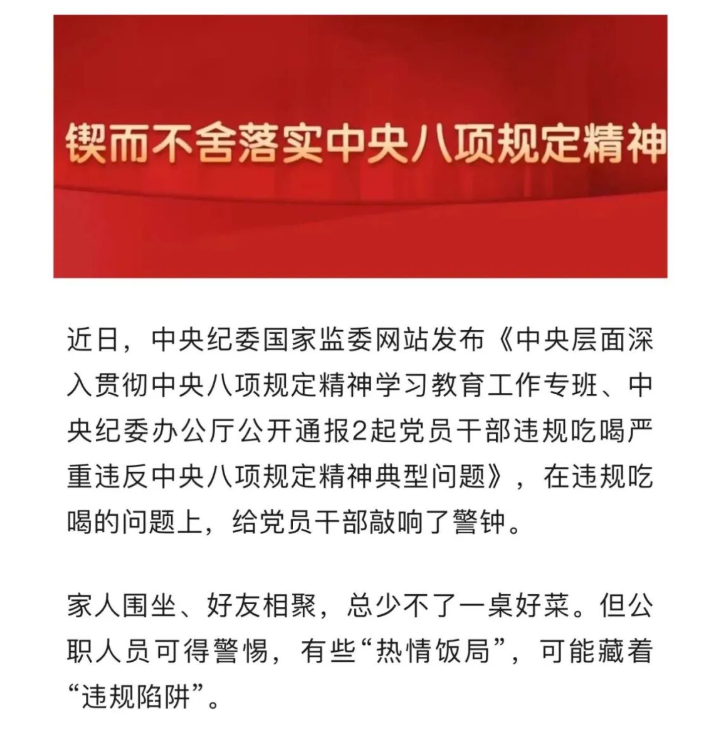 中央明确公职人员违规吃喝认定标准! | 锲而不舍落实中央八项规定精神